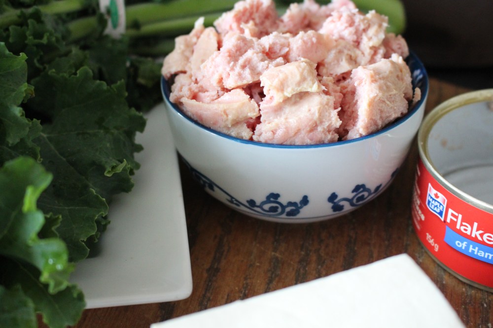 - mash your tofu in a large bowl using a fork, then add you mashed ham. mine was canned, so the mashing was fairly easy