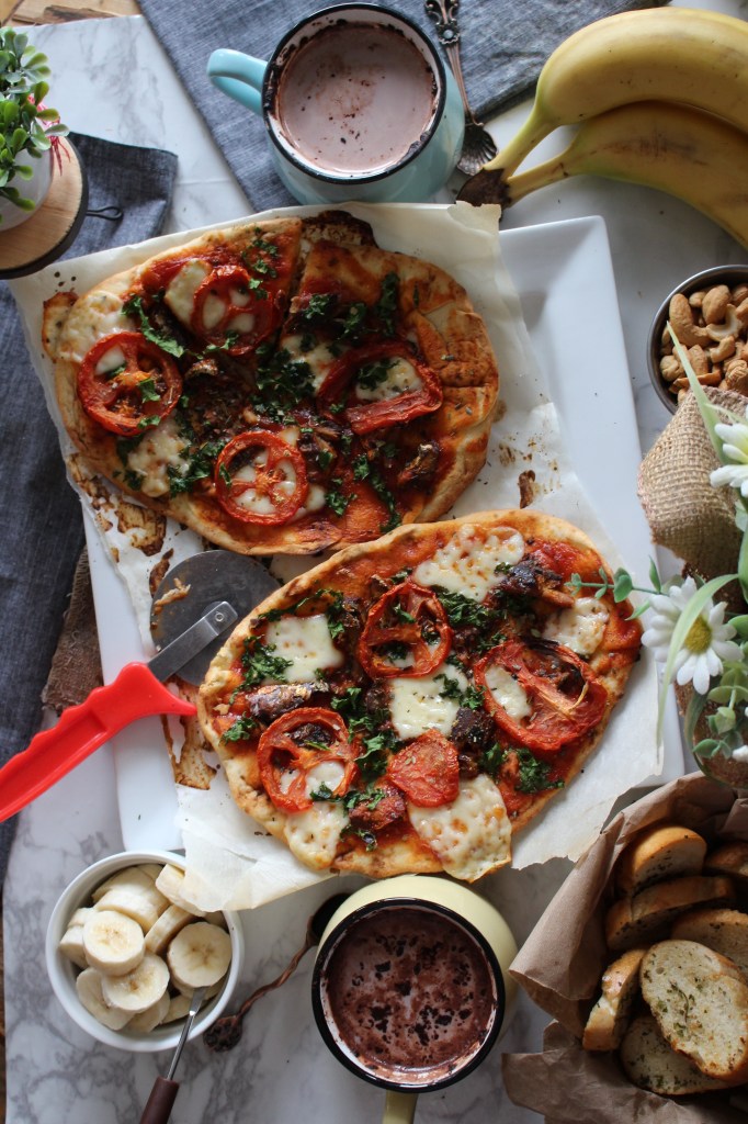 I make naan pizza for various occasions like movie night, paired with our luxurious popcorn. it is so filling too,! If you have all the ingredients on the in your fridge you might as well try it.